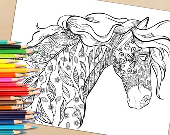 Adult Coloring Book Page Decorative Horse Coloring Page For